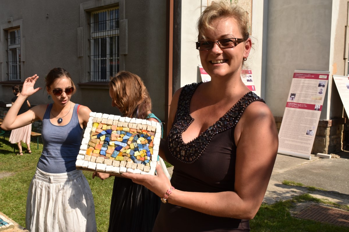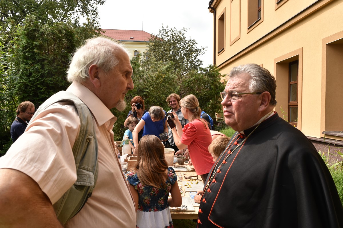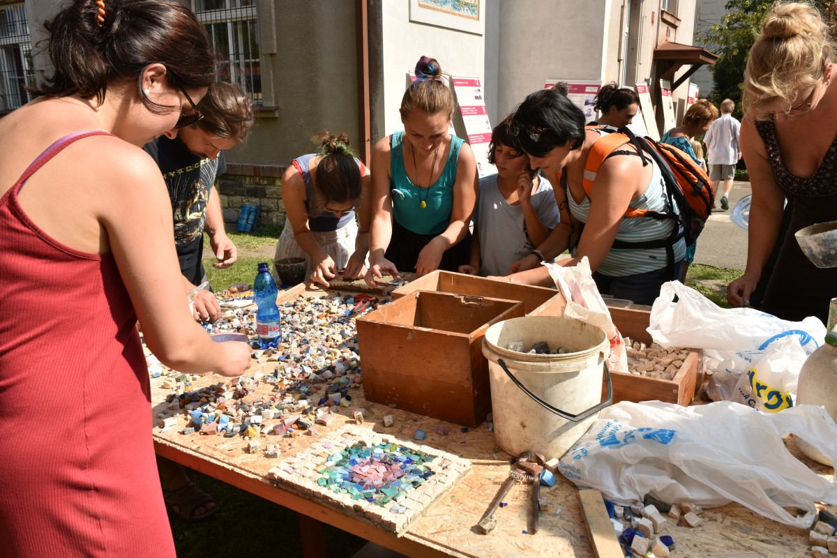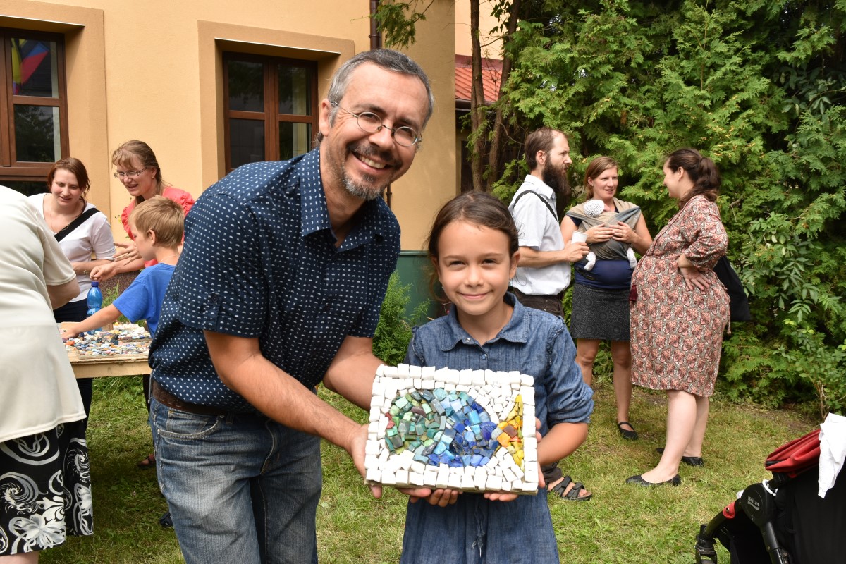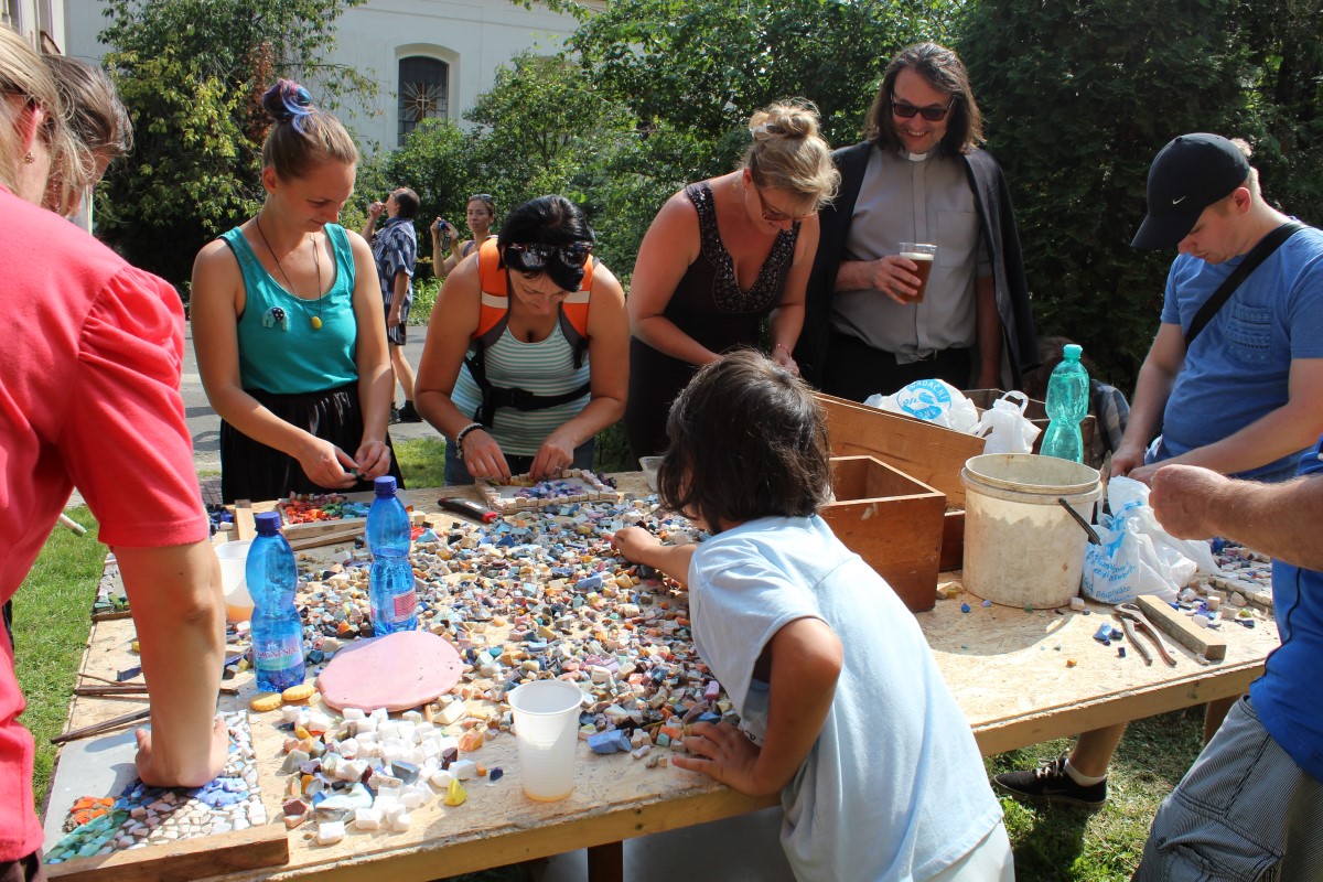 Fotografie z oslavy 100 let výročí farnosti: po slavnostní mši udělil kardinál Dominik Duka mozaice požehnání a následoval odpolední mozaikový workshop na zahradě fary.
