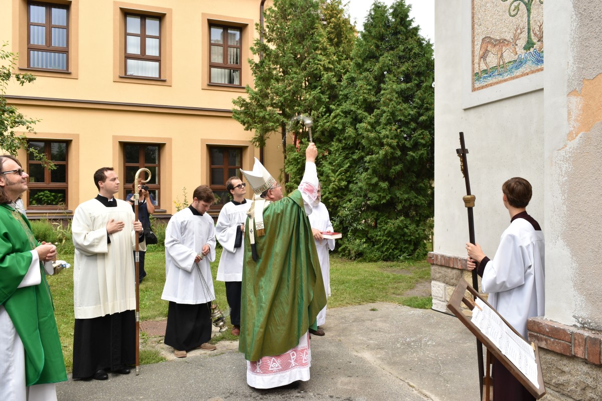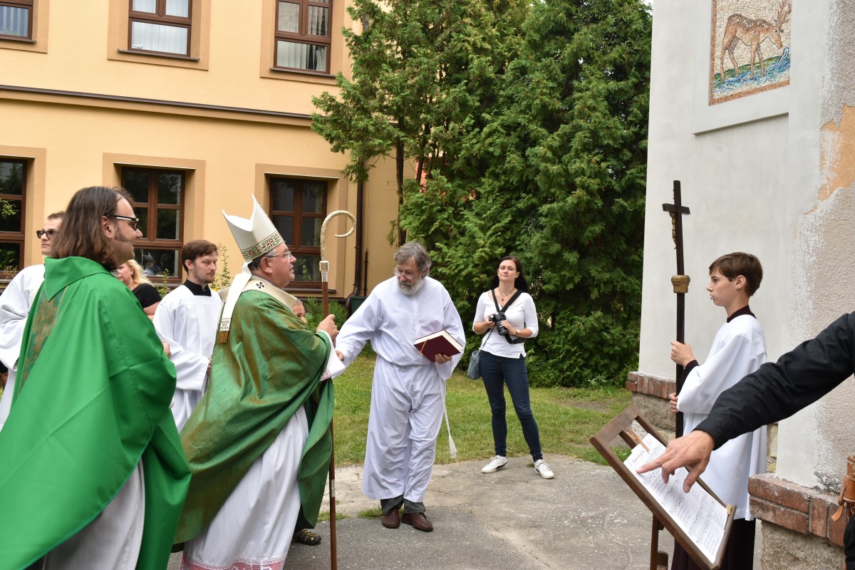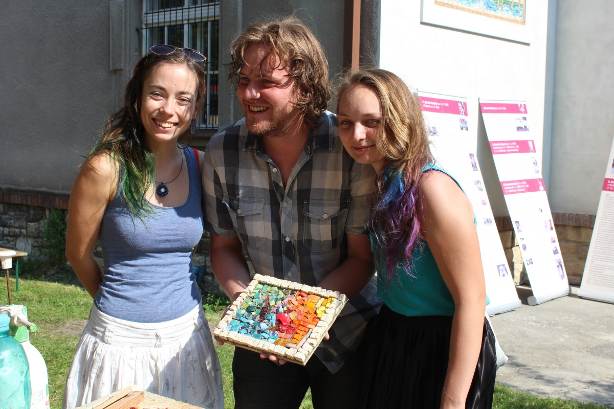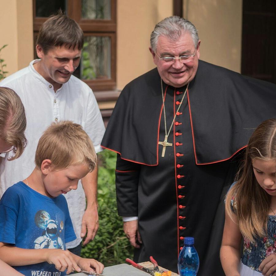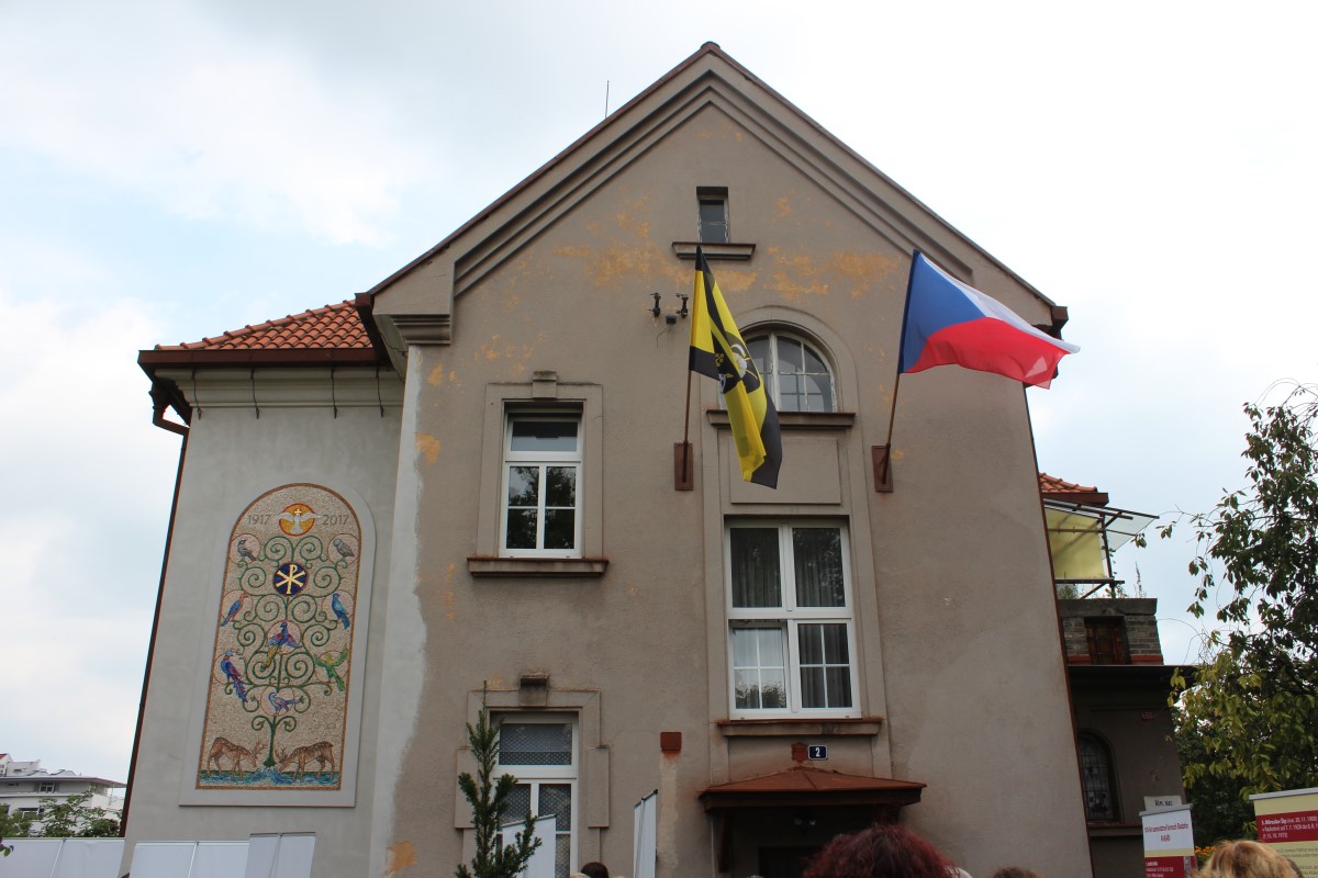 Fotografie z oslavy 100 let výročí farnosti: po slavnostní mši udělil kardinál Dominik Duka mozaice požehnání a následoval odpolední mozaikový workshop na zahradě fary.